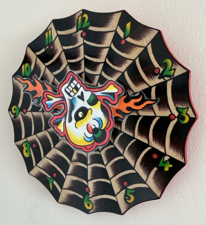 Each clock are hand cut out of premium plywood and hand painted individually. Then varnished and sealed. They are 25cm/25cm. Shipping available worldwide