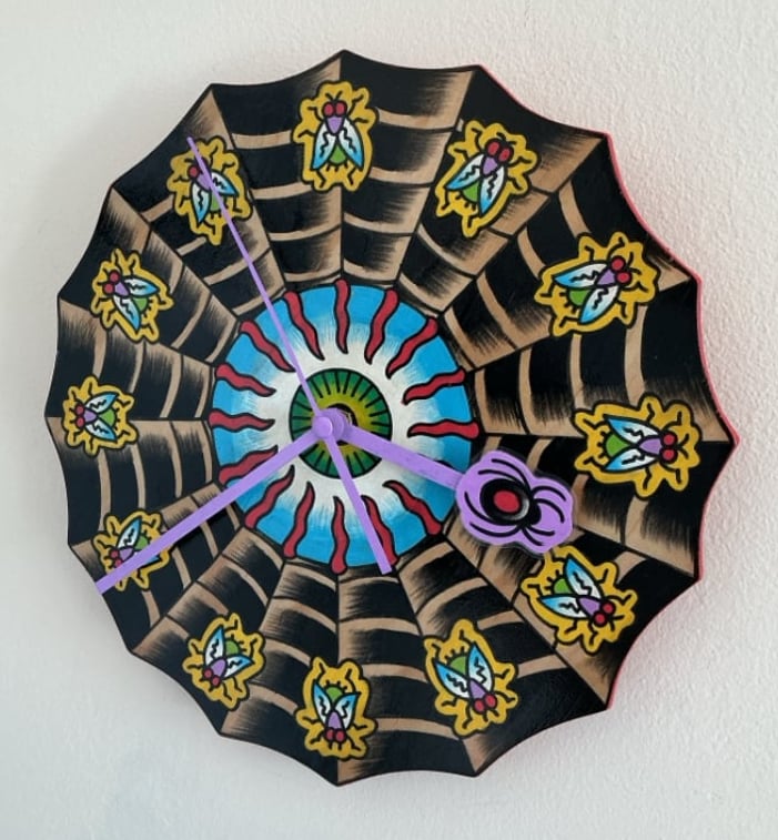 Each clock are hand cut out of premium plywood and hand painted individually. Then varnished and sealed. They are 25cm/25cm.