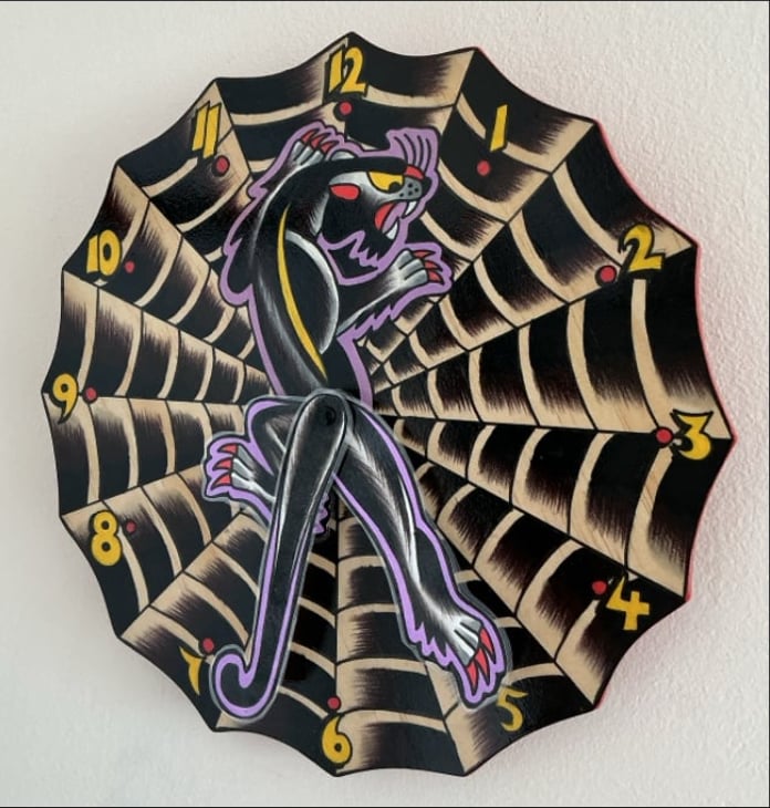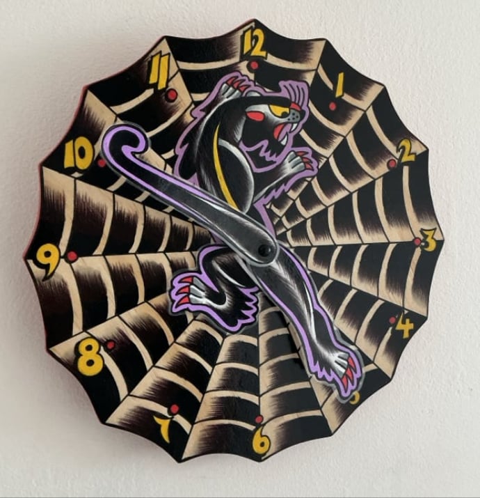 Each clock are hand cut out of premium plywood and hand painted individually. Then varnished and sealed. They are 25cm/25cm. Shipping available worldwide